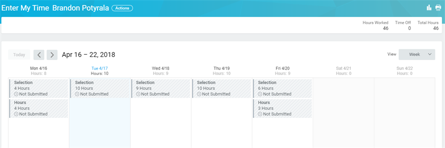 2. Once on the 'Time Entry' page begin entering hours as you normally would.